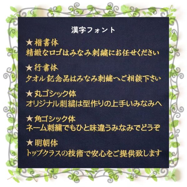 既成フォントとは、ミシン刺繍ソフトにあらかじめ備わっている文字書体のことを指します。漢字書体であれば、楷書体、行書体、明朝体、角ゴシック、丸ゴシック、平成ポップ、勘亭流の7書体になります。一方で、英字書体は非常に豊富で、 […]