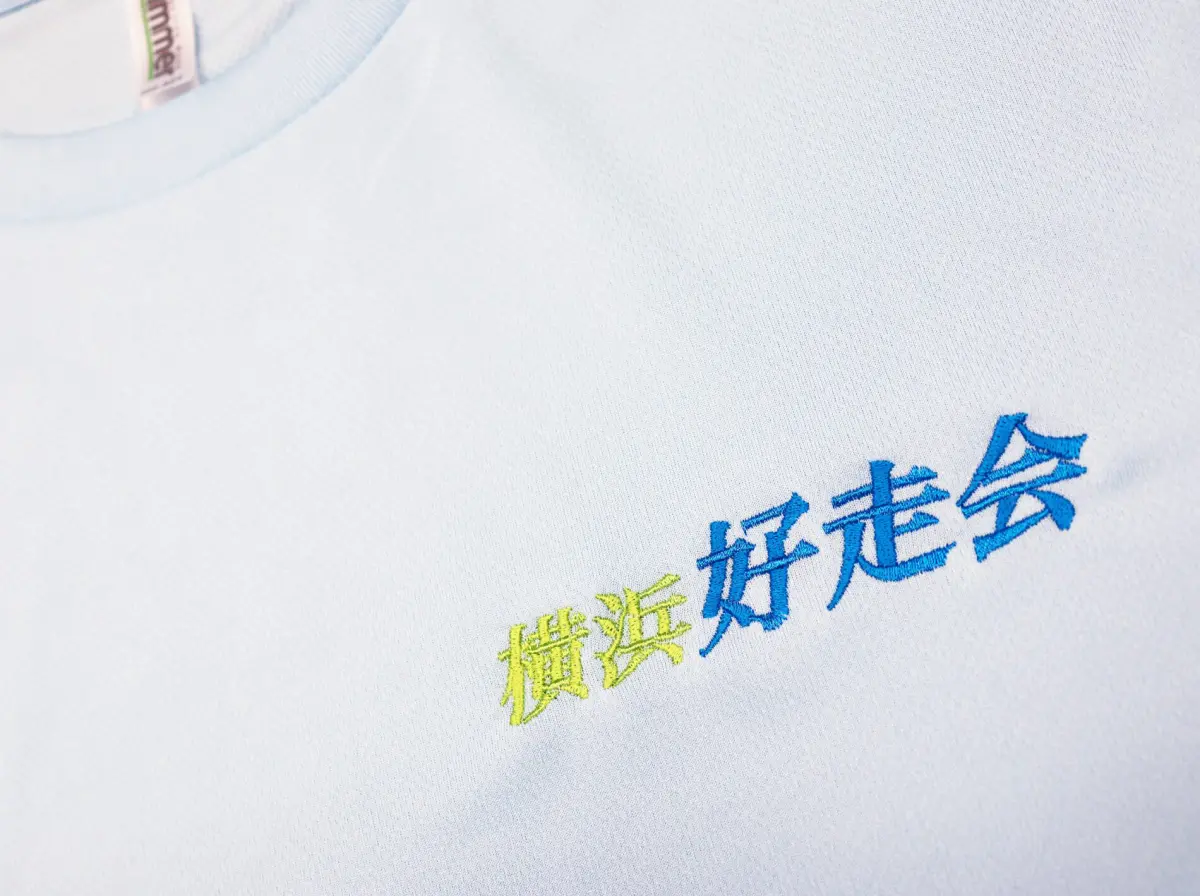 Tシャツ胸元への団体名刺繍|チームウェア刺繍