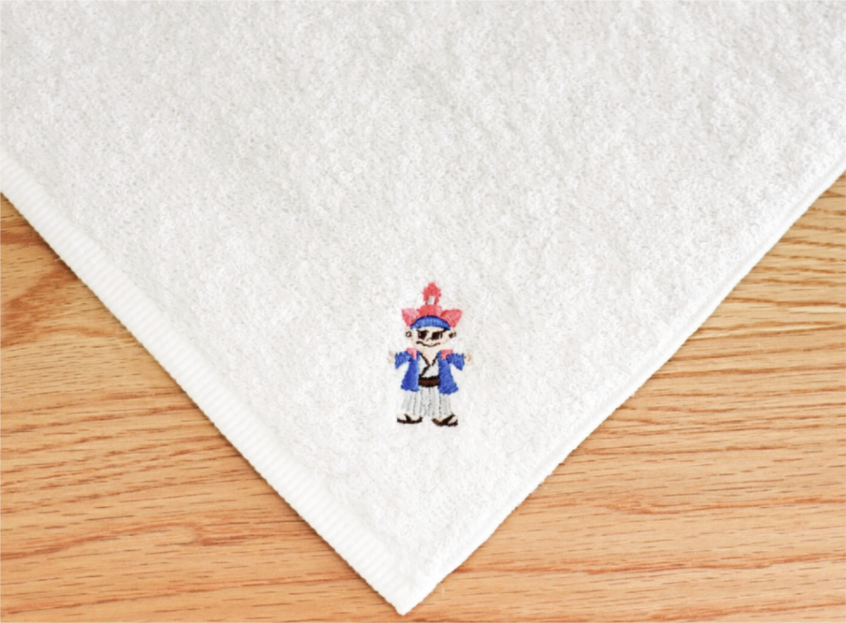 今治ミニタオルにワンポイント刺繍を施したオリジナル記念品